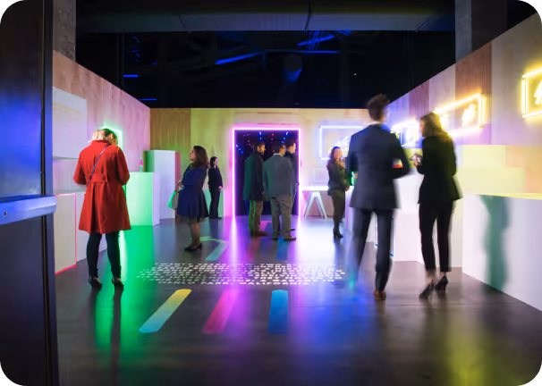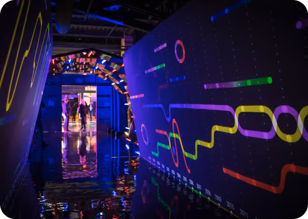 When guests stepped into the space, they were immediately transported back in time to the garage and workspace where Google was founded. Navigating through the garage, guests entered a mesmerizing tunnel illuminated with projection mapping, showcasing a 20-year timeline of Google search trends.