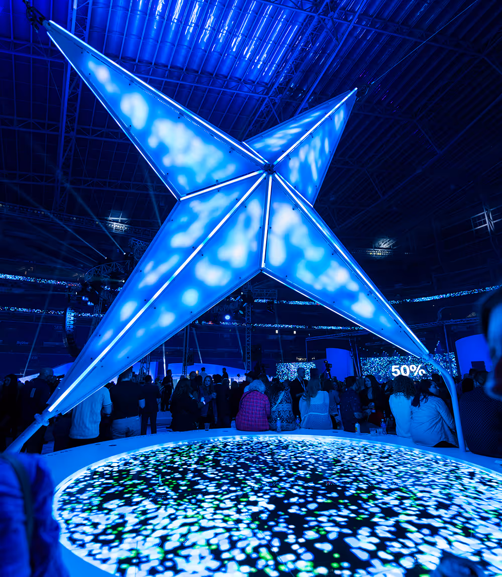 With each tap, the spark came to life through color, brightness, pattern and motion.This dynamic spark sculpture was a nod to the event's theme of how each individual action can lead to 100% collective impact.