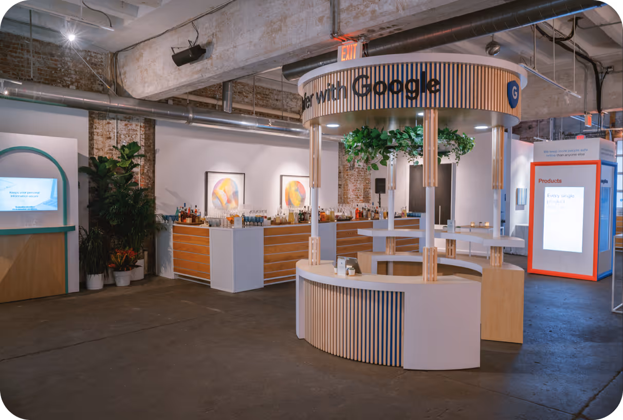 Guests entered the building through a tunnel with portal windows that showcased unique privacy tools and products. From there, they moved into a space where they could explore and learn specific security tools.