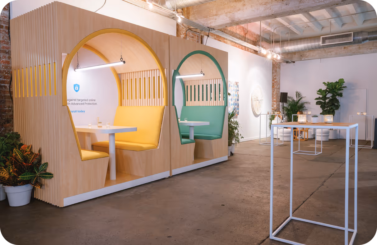 For a more interactive experience, ADVOC8 built custom privacy pods that guests could use to hold private conversations.
