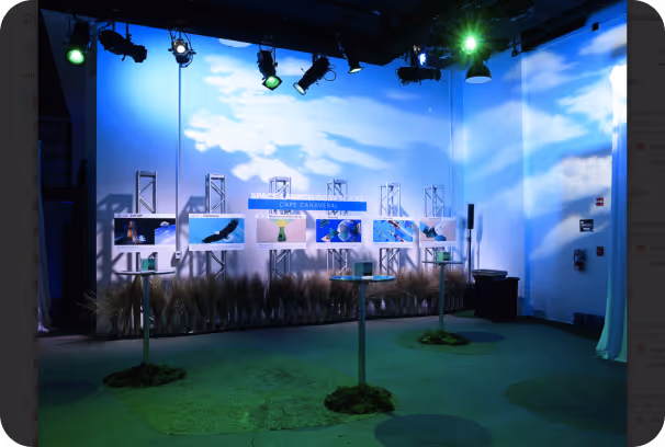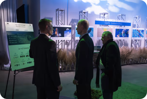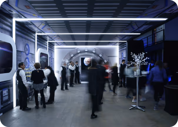 Our creative solution was to take guests on an intergalactic journey from Earth to space and beyond. Guests would arrive and embark on a guided journey through a custom-branded setting, moving from Cape Canaveral to the International Space Station, deep into space and beyond.