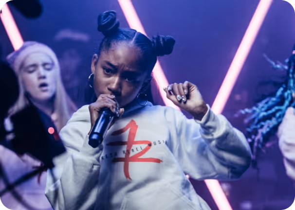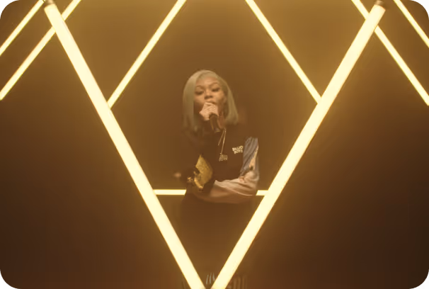 To shoot and edit 21 unique music videos within a 48-hour window requires agility — so we designed modular light-based sets with state-of-the-art, remote LED technology that could be synced and programmed in real-time.