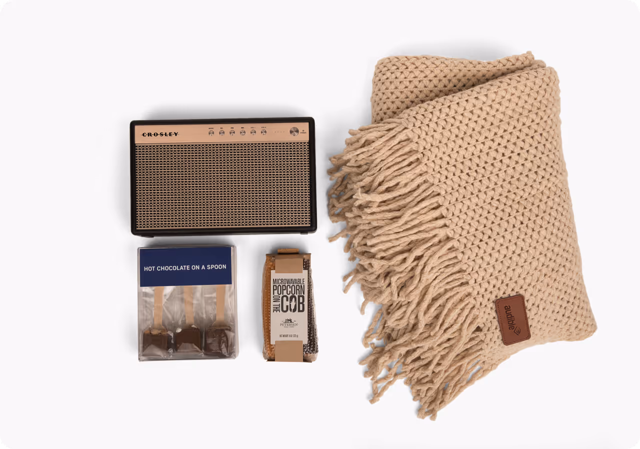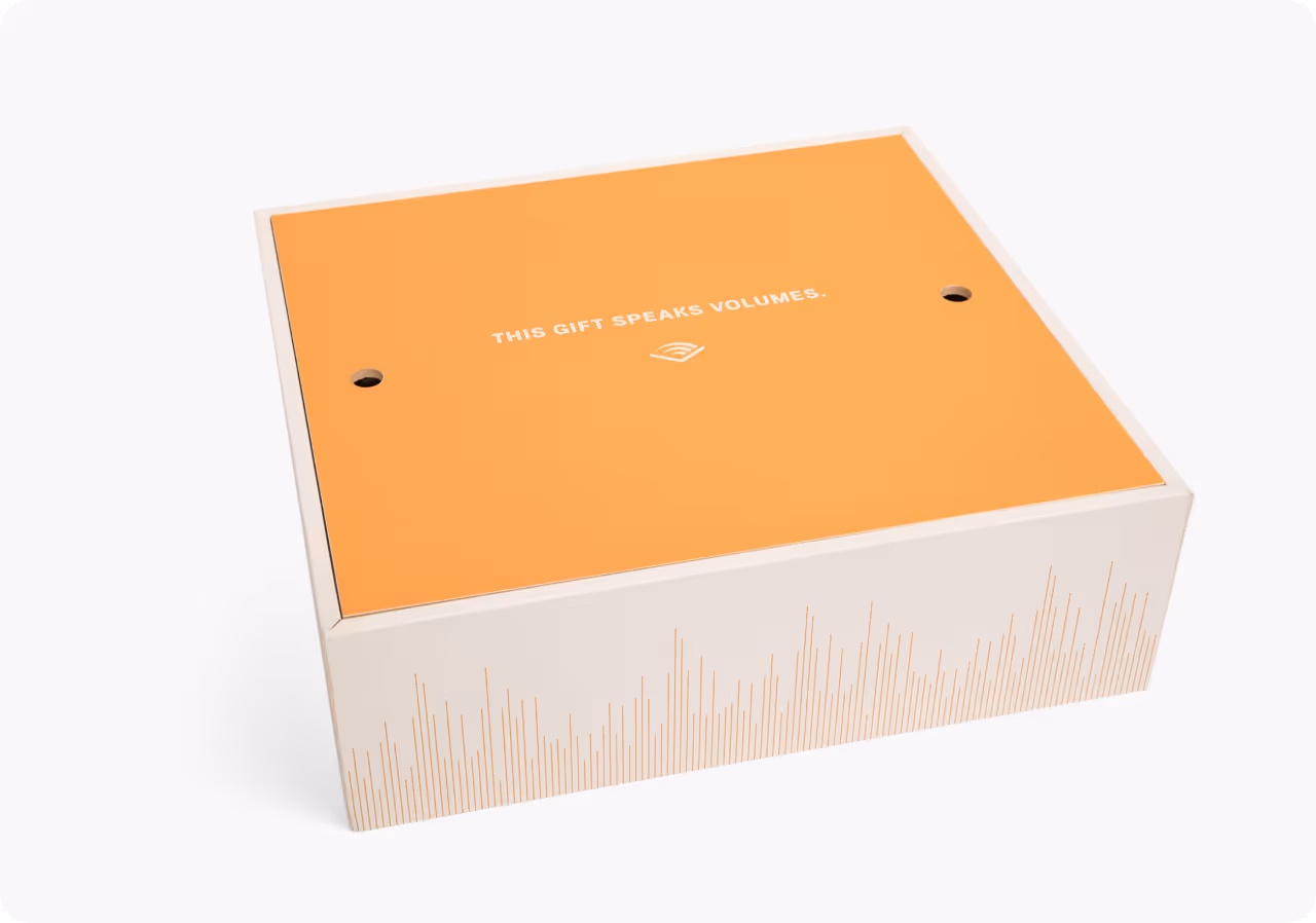 We packaged the following goodies in a custom box that featured a glowing design, offering a fresh take on Audible’s brand elements: